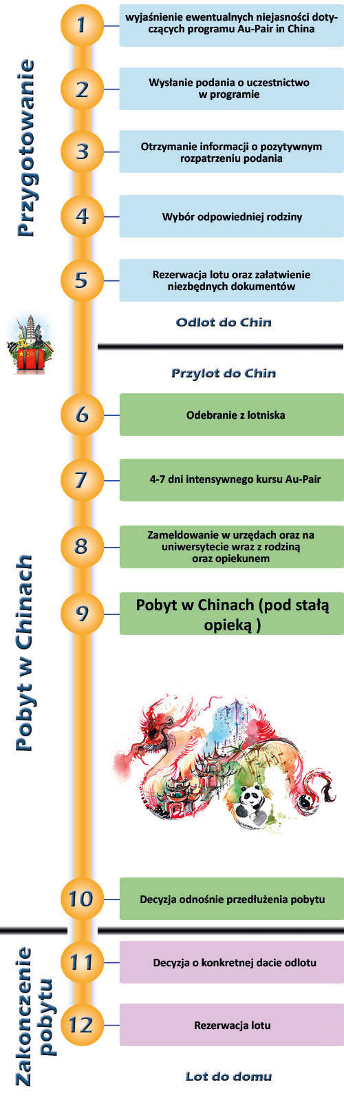 Chcemy wyjaśnić Ci program Mandarin School au-pair jak najdokładniej a taże wyjaśnić Ci wszystkie korzyści płynące z udziału w nim. Z tego względu znajdziesz na naszej stronie internetowej wszystkie potrzebne informacje. Jeżeli masz jakiekolwiek, pytania czy jeżeli pojawiają się jakiekolwiek niejasności poszukaj odpowiedzi w punkcie „pliki”. Jeżeli nie znalazłeś wszystkich odpowiedzi, możesz oczywiście zwrócić się bezpośrednio do nas. W punkcie „Kontakt” znajdziesz wszystkie dane. Po pozytywnym rozpatrzeniu Twojego podania, zostanie przydzielony Ci opiekun z jednej ze sprawdzonych przez nas agencji. Będzie on towarzyszył Ci przez cały czas przebiegu programu Au-Pair.