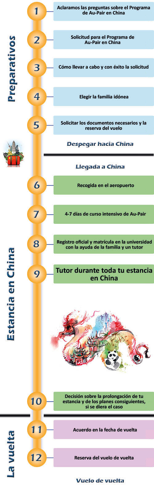 Queremos contarte lo más claramente posible cómo funciona el programa Mandarin School de Au-Pair en China, cuáles son sus ventajas y cuáles los pasos a seguir. Por ello te facilitamos toda la información necesaria en nuestra página web. Si tienes alguna duda o necesitas información, por favor, busca en "Enlaces" del menú principal. Si todavía encuentras ambigüedades, escríbenos para ponerte directamente en contacto con nosotros (en la barra de menú, en la parte inferior de la página, “Contacto”). Cuando completes tu solicitud con éxito, uno de nuestros compañeros te acompañará y aconsejará durante todo el proceso.